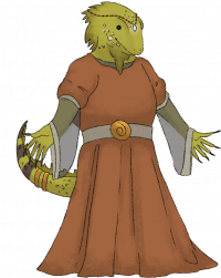 | Duchess Clemence de Lac | she/any | Ssar | 5 | Dress and symbols of office | An important dux of Palonia, imposing and impressive, green-scaled like most Palonian Ssar. She was instrumental in putting down a usurper during the previous emperor's reign and was rewarded with the position of the usurper. She now has ambitions to found a dynasty of her own in Palonia. Uncharitable whispers suggest that she wishes for Palonia to become more independent of the Empire; even more uncharitable whispers wish to proclaim her empress. Surely these are merely rumours. |
